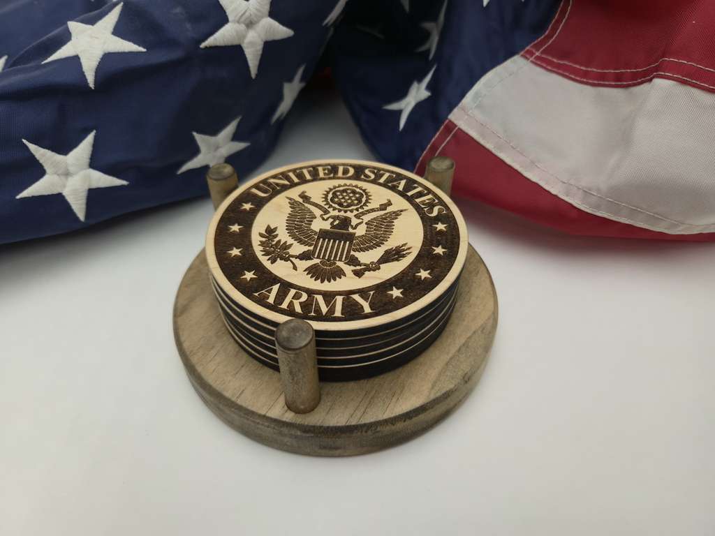 Lasered Coasters - Wooden Coasters with Holder - Military (L-14)