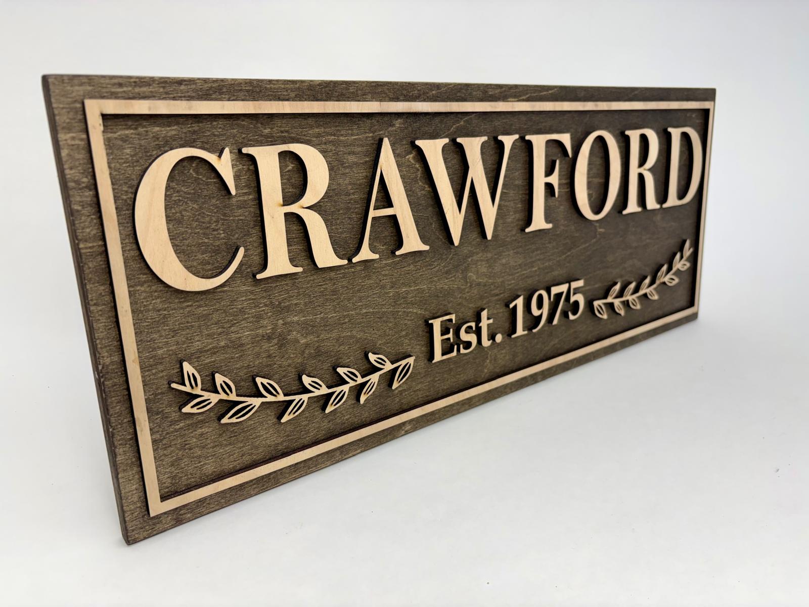 Lasered Family Name Sign - Wooden Welcome Sign - Porch Sign (L-15)